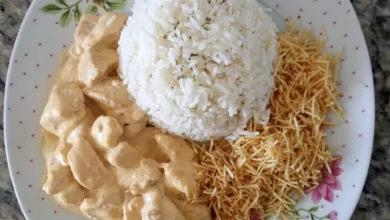 INGREDIENTE: 2 peitos de frangos cortados em cubos; 1 cebola branca grande cortada em quadradinhos; 3 dentes de alho em…
